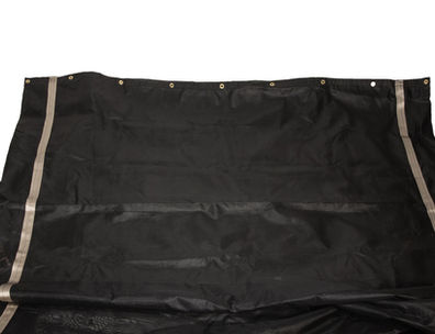 Universal replacement tarp for Pioneer Tarping Systems on hooklift hoists. Premium Black Mesh fabric with UCN reinforcements